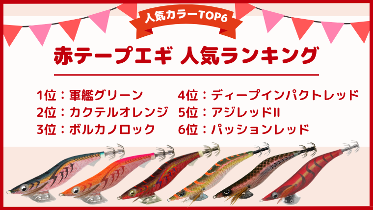 アンケート結果から、2026年最新!赤テープ下地人気エギTOP6を紹介します。