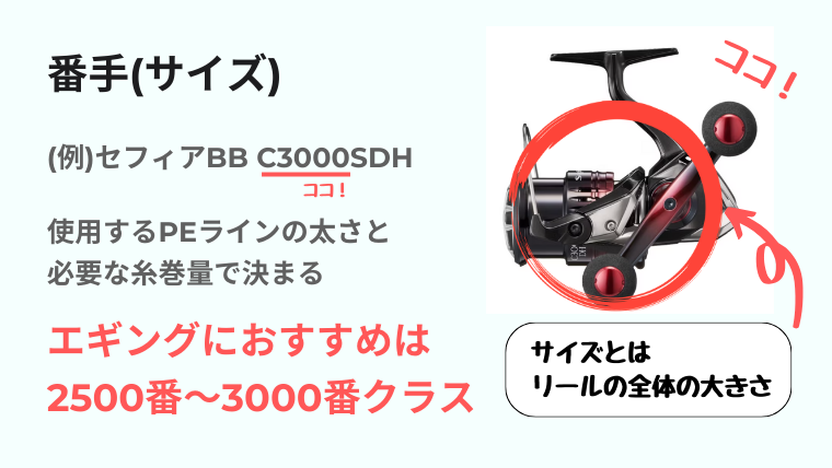 ここでは、初心者さんにも分かりやすく、エギングリールに適したサイズ(番手)、ギア比、ハンドルなどについてご紹介します。