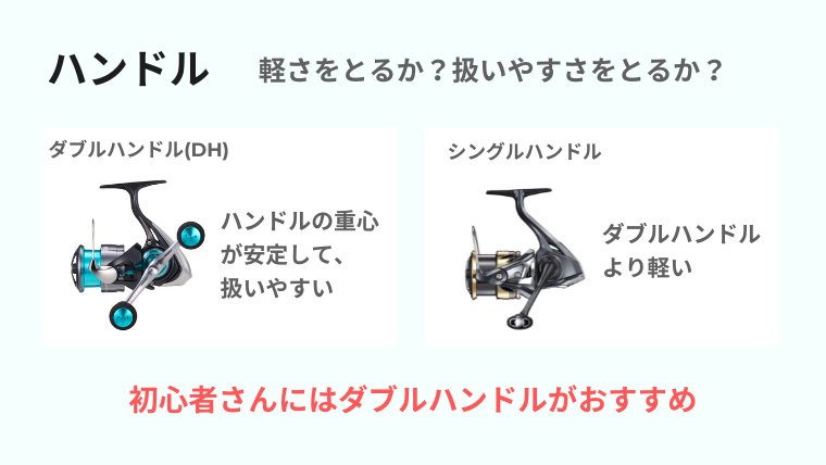 リール操作に慣れていない、初心者の方にはダブルハンドルがおすすめです。