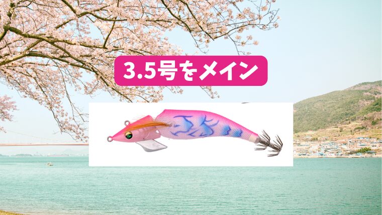 春の大型イカには、3.5号がベストマッチ。3.5号を基準にサイズ選びをしましょう。