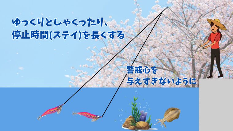 春のエギングは、秋のように「投げれば釣れる」という簡単なものではありません。